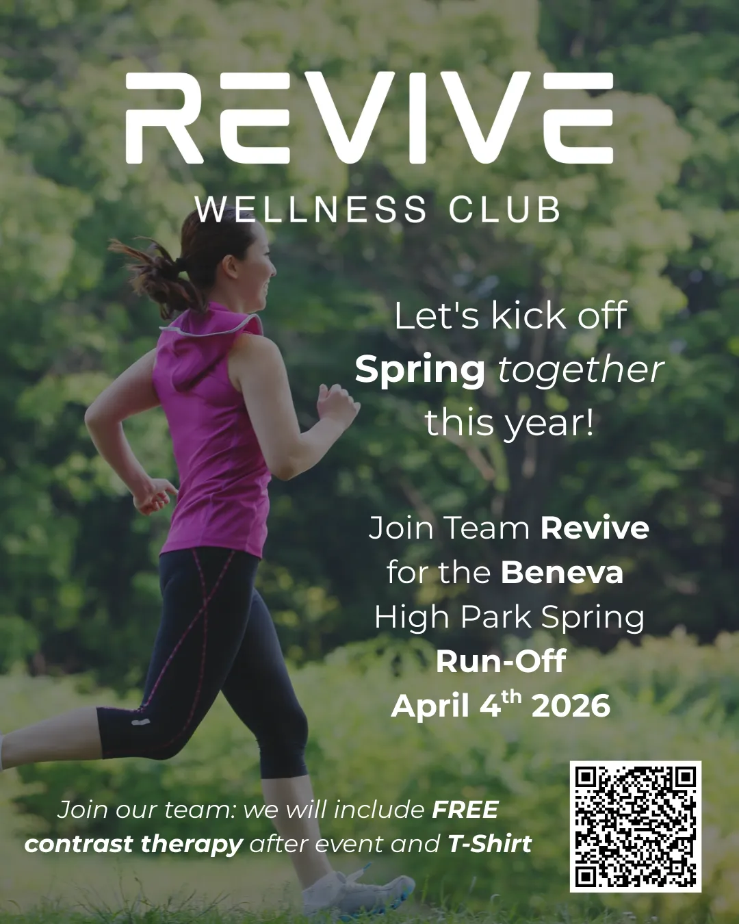 Scan QR code or click the link below and join team Revive Wellness Club for the 5k Beneva Spring Run-Off in High Park!
